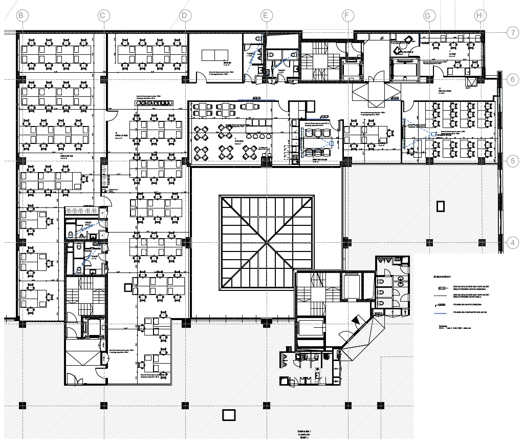 Egy szinten akár egybefüggően 1 500 m² irodaterület is kialakítható. Az irodaház belső kiépítése lehetővé teszi az irodaterek flexibilis megvalósítását a bérlők belsőépítészeti igényei szerint. A bérlemények légkondicionáltak, moduláris álpadlóval, padlószőnyeggel és álmennyezettel rendelkeznek.